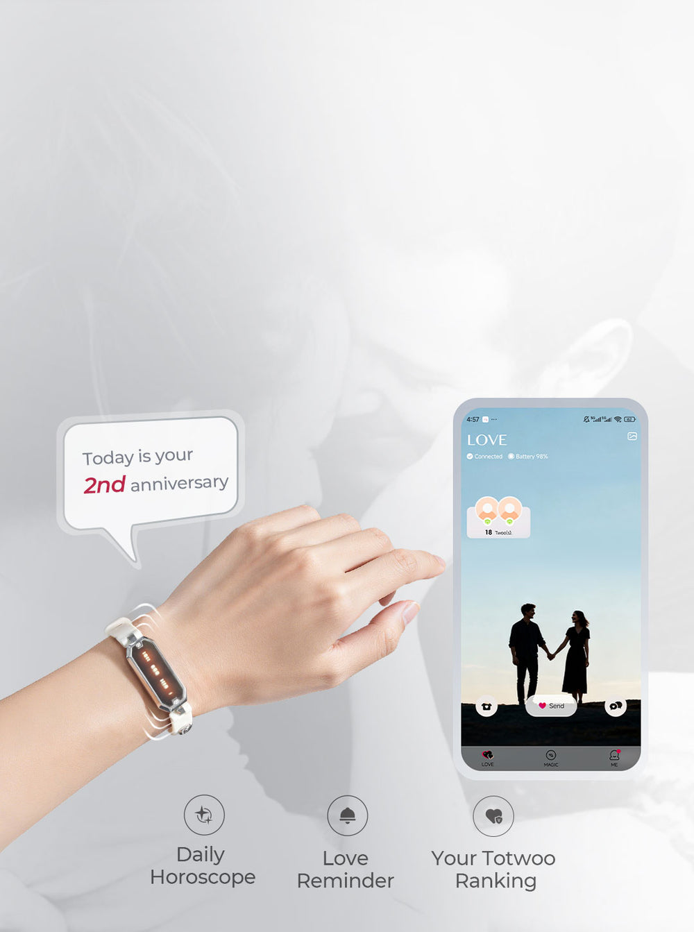 Unlock more romantic features through the TrendyHall App. Send private messages, love notes, and reminders for important dates and calls. Customize light colors and vibration patterns to match your feelings.